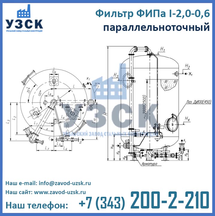 Стоимость фильтров ФИПа параллельноточных формируется в зависимости от типоразмера, материального исполнения, комплектации заказываемого оборудования и необходимости доставки в другой регион. Для того чтобы узнать сколько стоит фильтр ФИПаI 2,0-0,6 с обвязкой или без в Муроме, отправьте запрос в адрес производителя фильтров ФИПа (завод УЗСК) по координатам, указанным в разделе контакты.